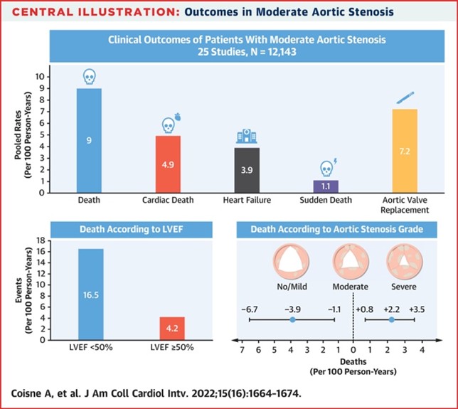 - Coisne A, Scotti A, Latib A, Montaigne D, Ho EC, Ludwig S, et al. Impact of Moderate Aortic Stenosis on Long-Term Clinical Outcomes: A Systematic Review and Meta-Analysis. JACC Cardiovasc Interv 2022;15:1664-1674. doi: https://doi.org/10.1016/j.jcin.2022.06.022